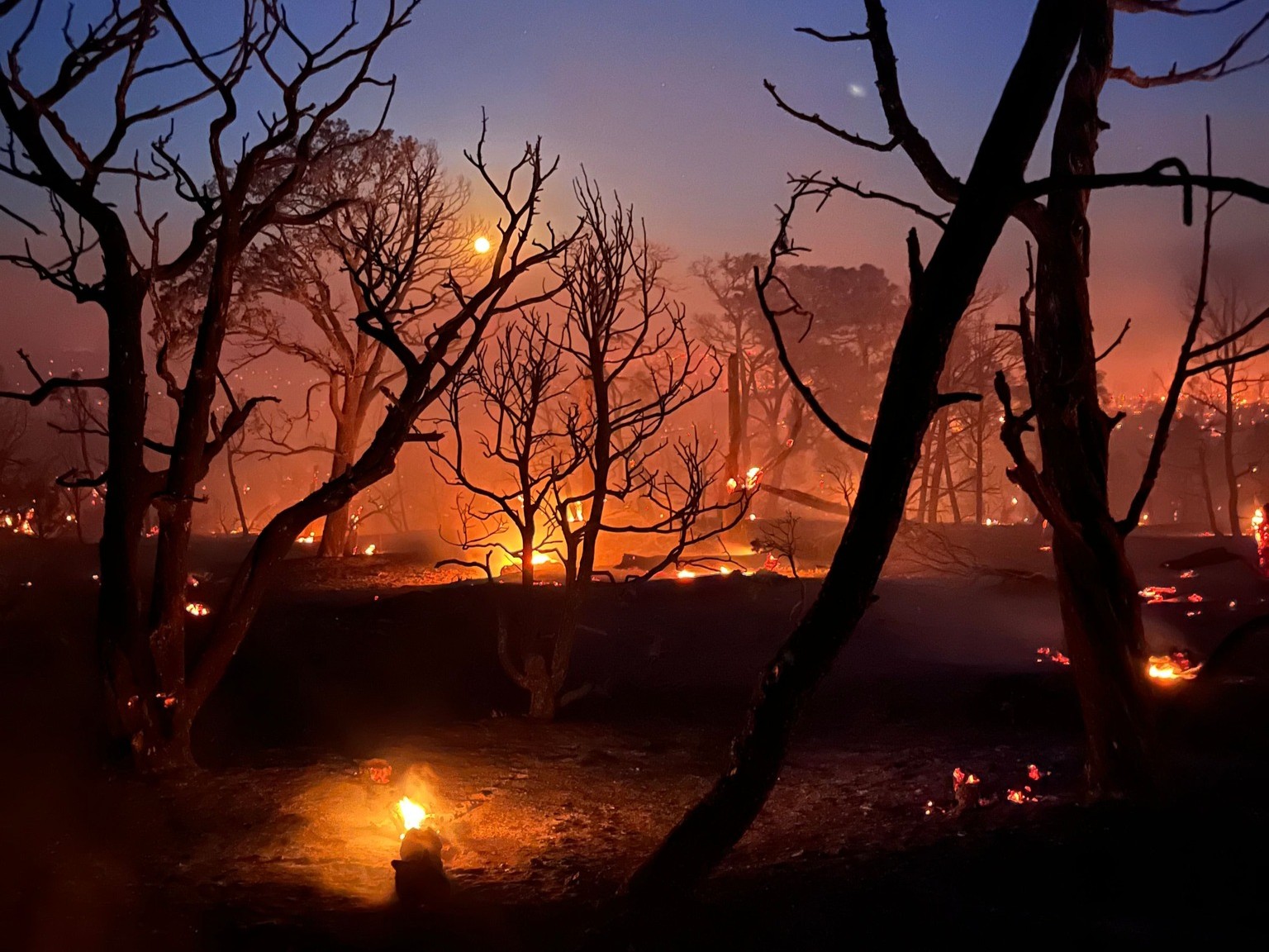 Abundant, extremely dry fuel sources are fueling the fire’s spread day, and night and debris rolling down the canyon is igniting areas below, sending flames rushing back up the steep slopes, officials said.