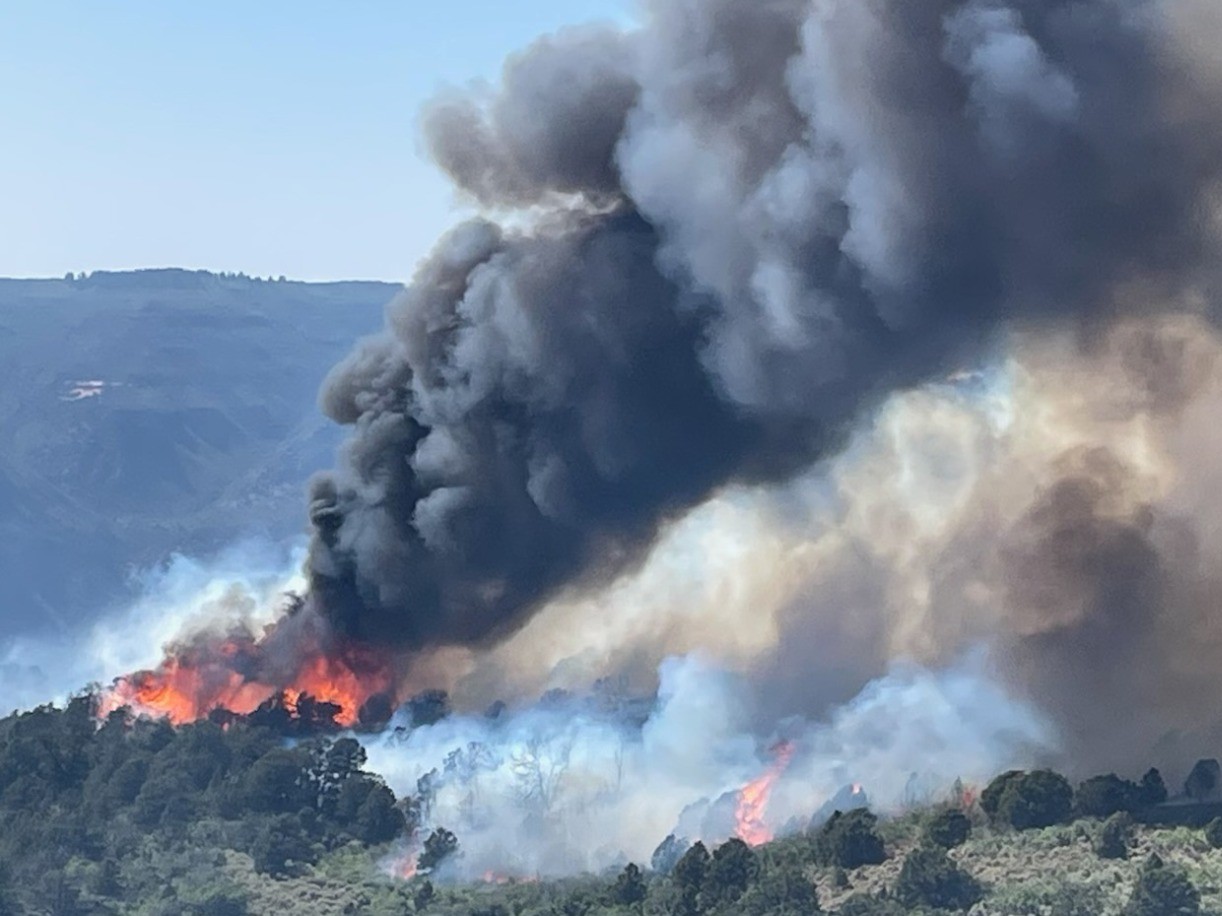 The fire is burning in the Dominguez-Escalante Canyon National Conservation Area, about 12 miles west of Delta near the edge of Montrose, Delta and Mesa counties.